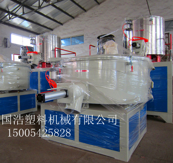 产品介绍  SRL-Z系列混合机主要用于聚氯乙烯树脂、聚乙烯、聚丙烯、ABS、聚碳酸酯等吸湿性树脂的混合、着色或加工前的干燥等工序,具有混合效果好、升温速度快、冷混降温效果好、结构紧凑、机器操作方便等优点,是您理想的选购产品。性能参数总容积	有效容积	搅拌桨数	卸料方式	起盖方式	加热/冷却方式	混合时间	驱动功率300L	225L	3片	气动	气动	自磨热	8-12分/锅	40/55KW600L	380L	1对	气动	气动	水冷却	8-10分/锅	11KW使用及维护  混合机安装应装在坚固混凝土上,使底座四脚垫平并校正,使整机稳定,电盘摆放位置由用户自行安排。    机器试车前,应仔细检查所接的电源、气源等与机器的要求是否一致,个零部件是否安装齐全,对照电气原理图检查安装时接的电路有无差错。机器的地脚螺栓是否紧固,锅体内严禁有杂物和松动的零件,各润滑点应按规定注满指定的润滑油脂,擦净机架各处的防锈油。    热机应从低速空载启动,待运转平稳后,再进行高速空载运转。检查旋转方向是否是顺时针方向,空运转十分钟,检查锅盖开关和气源部件是否正常。试车运转正常后,再进行投产使用。     机器一经使用后,若短时间不用,应擦净锅内壁及搅拌浆等处,长期不用时,应涂上防锈油。其他说明1. 本机组不允许带负荷启动及频繁启动,严禁不盖盖开机启动。出料时不应停机。