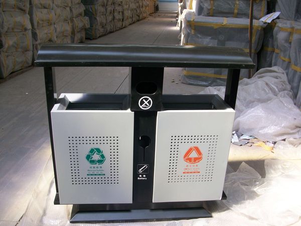 2.我们的分类环保垃圾桶款式多样,可分类投放垃圾,内有两个锌铁内桶,前面开门,使用方便。