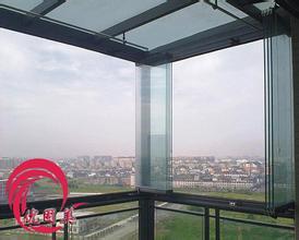 我公司生产的无框阳台玻璃窗,引进国外新技术,推出21世纪阳台封装新概念,既室内中的"室外"室外中的室内.它既可以将玻璃全部敞开,贴墙叠起,也可全部封闭,不会影响到建筑的