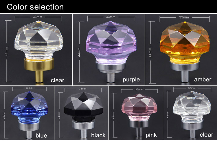 这款精美的水晶拉手采用优质的K9水晶,色泽剔透光亮。水晶以其优雅的外观深受消费者的青睐,能够提高你的家居格调。水晶拉手应用于各种家具,如橱柜、衣柜、鞋柜、床头柜等等。作为五金家居配件底座是采用锌合金材料制作而成,不易腐蚀,上面的水晶经久耐用不掉钻,而且擦拭起来也很方便。