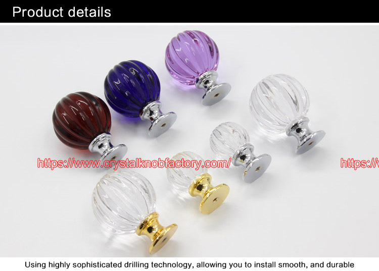 中国制造的南瓜样式玻璃把手的原材料采用先进的高科技精密技术制造而成,我们拥有一整套的车间配套,从原材料选取到成品,易佳专住品质的保证。细心呵护每一个产品,热心接待每一个访客,耐心回答每一个问题,用心服务每一位客户是我们的理念。南瓜型的水晶把手属于大气时尚类型,奢华之中不显庸俗迷人之显曲线,一切是那么的自然优美。 如果是选择困难症,不管你家里是欧式装修风格还是现代风格,选水晶拉手和门把手是不会错。五金金属配件中的水晶拉手和玻璃门把手优质K9水晶,色泽度好,光彩闪耀,晶莹通透,棱角分明,我们不放过每一个可以优化的细节,努力为你呈现最优质的产品。