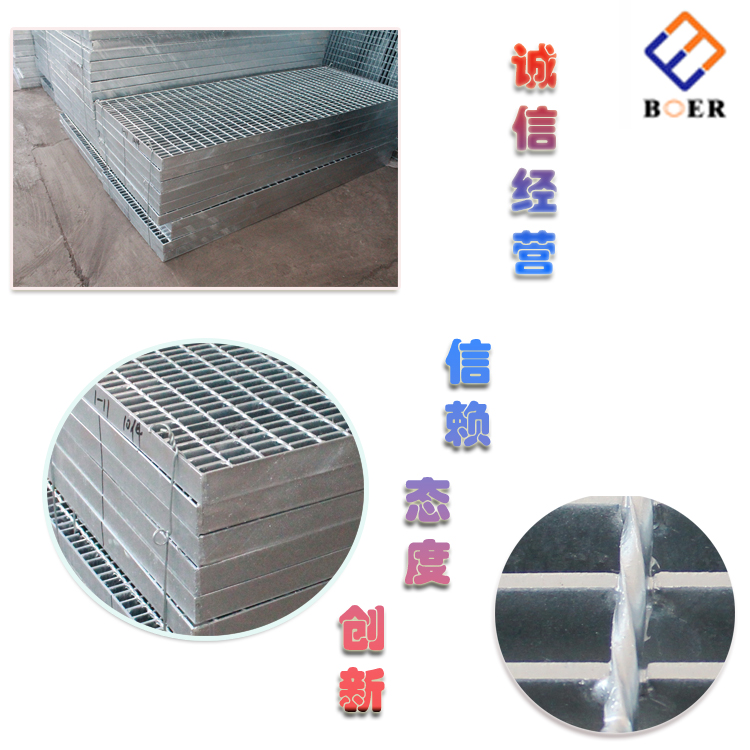 博尔公司产品主营产品有:钢格(栅)板. 热浸镀钢格板、不锈钢格栅、复合钢格板、插接式钢格板、压锁钢格板、船业专用钢格栅板、电厂和化工专用格栅板、立体停车系统专用钢格板、楼梯踏步板、水沟盖板、玻璃钢格栅板、雨水蓖篦子、下水井盖、电缆沟盖、围墙、天花板吊顶格栅、遮阳板、扶手栏杆、安装夹和钢梯及小型钢结构等及延伸产品数类。产品严格按中国GB700-88钢材标准、钢格板YB/T4001—1998标准生产,产品符合美国ANSI/NAAMM(MBG531—88)、英国BS4592—1987、澳大利亚AS1657—1985标准。