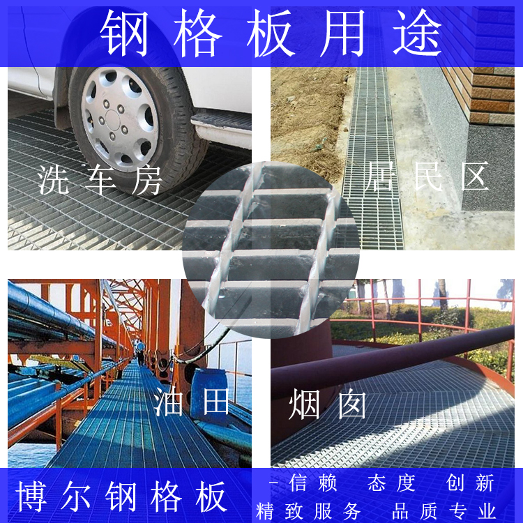 钢格板又名格栅板,广泛应用于石油化工、电厂、水厂、污水处理厂、市政工程、环卫工程等领域的平台、走道、栈桥、沟盖、井盖、梯子、围栏、护栏等。我厂钢格板产品种类众多,可根据客户要求的不同环境,不同承载力、跨度、形状和颜色以及成本造价,为客户设计、生产制造产品。所有产品从原材料采购,生产制造,成品检验直到投放市场,均按照先进规范严格管理工艺流程,使钢格板达到质优物美。