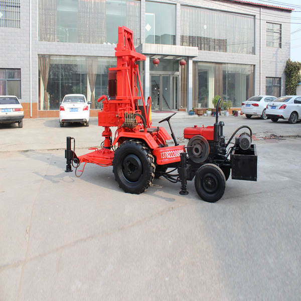 3.钻机底盘配置液压高支腿,可用于钻机 调平、装卸车,作业时也可作为辅助支撑。 该系列钻机采用拖拉机作为底盘,可以直接开着去工地,行走速度和越野性能都不错。