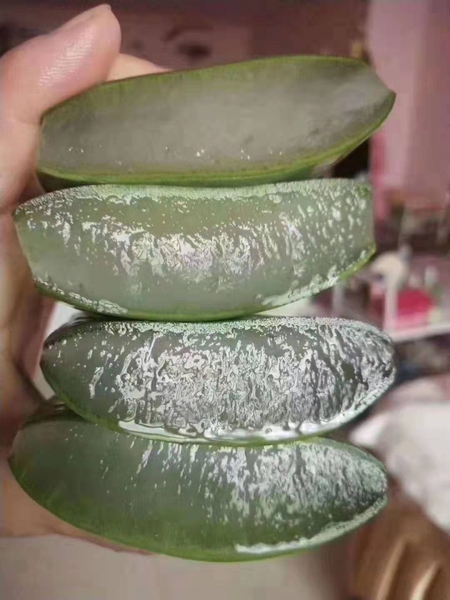 翠叶芦荟是最适宜直接美容和生吃的芦荟鲜叶,即库拉索芦荟,它具有使皮肤收敛、柔软化、保湿、消炎、漂白的性能。还有解除硬化、角化、改善伤痕的作用,不仅能防止小皱纹、眼袋、皮肤松弛,还能保持皮肤湿润、娇嫩,同时,还可以治疗皮肤炎症,对粉刺、雀斑、痤疮以及烫伤、刀伤、虫咬等亦有很好的疗效。对头发也同样有效,能使头发保持湿润光滑,预防脱发。