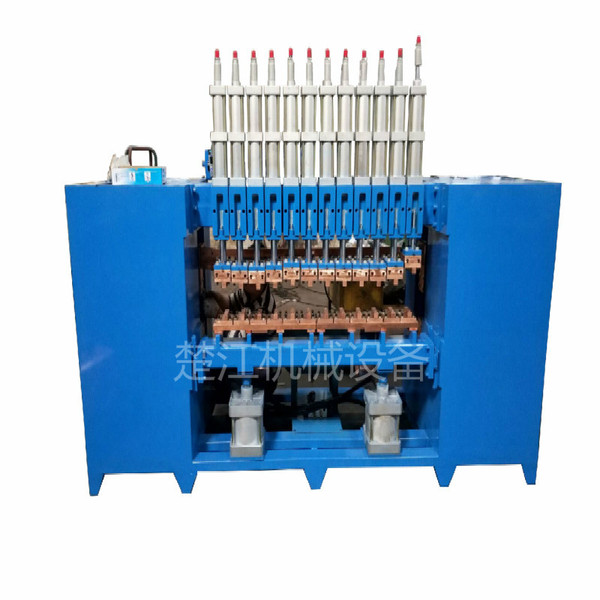A、一台机器多个气缸,气缸可依次动作或独立单缸工作,较宽较重的网可不进行左右移动或少左右移动的状况下,排网片可一次焊完或减少次数焊完。以此减少人工及体力劳动达到提高效率的目的。