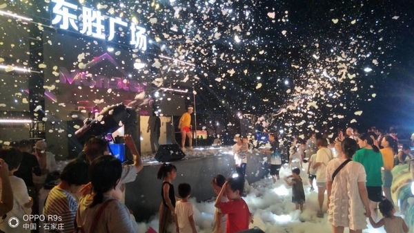 夏天超嗨泡沫派对,“泡沫派对”又叫“ FOAM PARTY”,是一种以五彩泡沫为纽带,增进彼此间友谊、宣泄身心疲惫的特殊派对,一种流行于欧美国家最新的时尚派对代表,现场数以万计加仑泡沫一直地喷洒和倾吐在狂舞的人群身上,直到你被淹没快到脖子的高度。这听起来似乎有点可怕和混乱,其实它是最棒和最happy的, 为派对增加了无穷的乐趣。你也不必担心它对皮肤及眼睛产生刺激。泡沫是经过严格检测,无色无味,因此尽可以无拘无束地享受与泡沫的肌肤之亲。通常在泡沫派对上,泡沫在前几个小时只是暖暖身,是不会淹没你的脖子的。等音乐、灯光把大家调动到最High的时候,泡沫机大炮将启动。突然,大量的泡沫像最猛烈的雪花从天而降,覆盖到人的身上,霎时所有的人被泡沫满头满脸地给埋了起来,如果是在酒吧里,就算是在二楼,冲射时高达8米的泡沫浪花也不能幸免啦!泡沫从一个边到一个边缓缓的累积覆盖直到将舞池装填到大约5 只脚深,到了泡沫派对的最后,地板上将堆积一只脚厚的泡泡,有些人就会在地板上滚来滚去。每次喷洒的泡沫也不一样哦, 有一些是相当轻而蓬松的泡沫,落在身上象雪花,有些则比较厚实,有点被水泼到的感觉,留在身上也会更长一些。