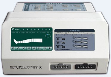 空气肢体压力治疗仪又称空气波压力治疗仪、循环压力治疗仪、梯度压力治疗仪、四肢循环仪或压力抗栓泵等。主要是通过多腔气囊有顺序的反复充放气,形成了对肢体的循环压力,从肢体的远端到近端进行均匀有序的挤压,促进血液和淋巴的流动及改善微循环的作用,加速肢体组织液回流。