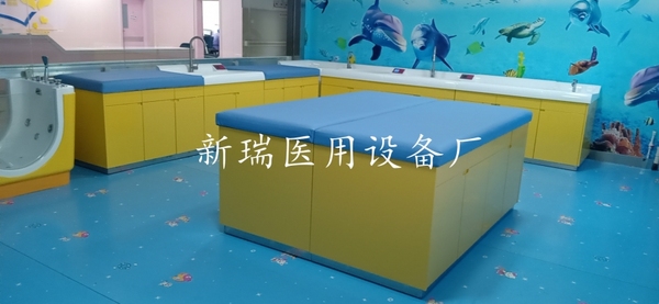 新瑞婴儿洗浴中心拥有良好的台面质感,细腻亲切,无冰冷感,全弧形造型设计给婴儿体贴的呵护与关怀,洗礼池和游泳池特有的裙边设计,既方便固定一次性防交叉感染隔膜袋,又防止台面上污水流入池内。游泳池利用有效的水平面积提供更加理想的池内净深度,满足婴幼儿洗浴时的安全高度需要,同时有效保持水温特别设置水位线,防止婴儿游泳时池水外溢。