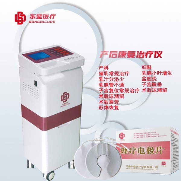 产后康复治疗仪:有主机、电极线、电极片组成。电极片分为乳腺电极片、体表电极片。