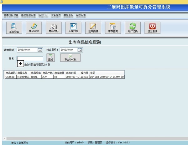 (1)商品打标:根据商品录入日期、商品名称进行条件筛选,打印自己需要的二维码标签。如图示:
