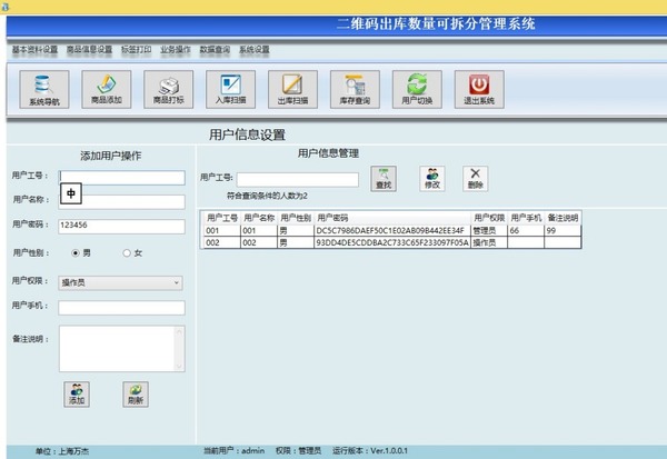 3、基础信息:用户信息设置:为系统提供操作人员功能。管理员具备增加、修改、删除的权限。如图示: