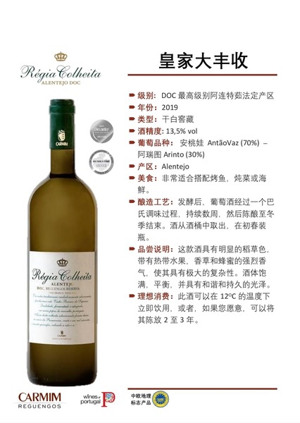 葡萄品种: 安桃娃 Antão Vaz (70%) - 阿瑞图 Arinto (30%)
