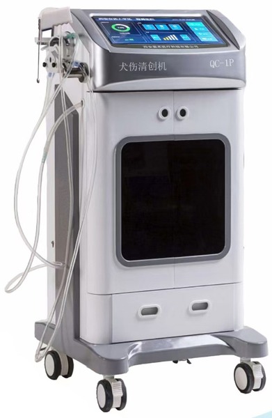 2、双核设计:多功能清创机、超声清创和负压吸引可同时使用,互不影响。极大的解决了不同类 型创面清创的等待时间。