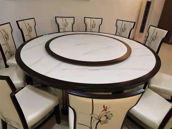 电动餐桌就是在大圆桌面上安装以电动转盘,使用时转盘可以根据设置自动低速旋转,方便用餐人员,夹取食物菜肴。一般有手动设置匀速和变速两种。一般配有远程遥控器。多用于酒店包间,采用实木,密度板,多层等板材制造而成。转盘多为钢化玻璃或者实木面制造。电动餐桌是近几年酒店餐桌椅的一个创新产品,可以给人们就餐带来更多的方便。