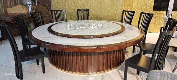 一般有手动设置匀速和变速两种。一般配有远程遥控器,。多用于酒店包间,采用实木,密度板,多层等板材制造而成。转盘多为钢化玻璃或者实木面制造。电动餐桌是近几年酒店餐桌椅的一个创新产品,可以给人们就餐带来更多的方便。