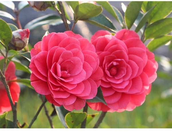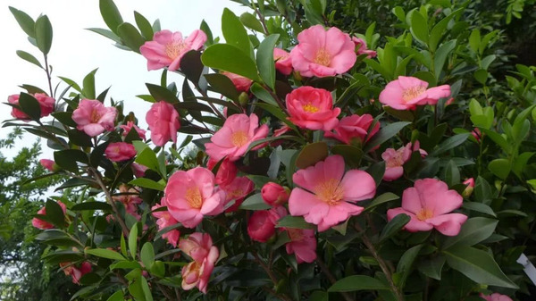 ②施肥。山茶喜肥,但忌施生肥、高浓度肥,只能薄肥勤施,并在不同的生长期施用不同的肥料。一二年生幼树不施或施极稀薄的氮肥,以免烧苗。而成龄植株须不断追肥,以保证充足的养分供应。3月~4月追施以氮肥为主的腐熟稀薄液态肥,如矾肥水、饼肥等,以促发新根新芽,并使枝壮、叶大、色绿;4月~5月以磷肥为主,促使花芽分化,多长蕾;初夏5月~6月,以磷钾肥为主,促使花蕾膨大,提高抗御高温的能力,以免死蕾、落蕾;9月至花蕾吐色前,每隔半个月施1次氮 磷钾复合肥或骨粉或0.2%磷酸二氢钾液,促使花蕾发育与开花。