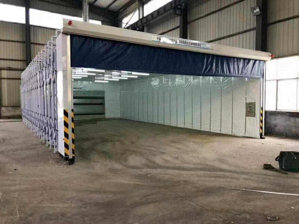 7.移动伸缩式喷漆房可根据顾客的实际生产需要定做各种型号的非标尺寸