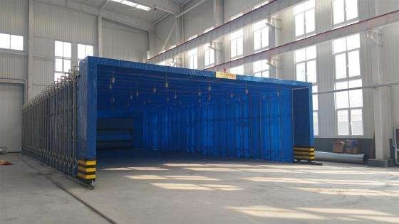 4移动伸缩式喷漆房整体为框架传动结构,每组框架间均由阻燃PVC布密封连接,安装快捷、外形美观。