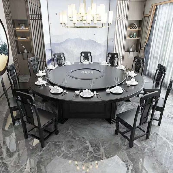 电动餐桌供应 新中式实木餐桌 自动转盘大圆桌 椭圆电动桌