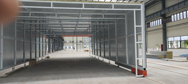 整体移动伸缩喷漆房的工作原理:伸缩喷漆室解决较大型工件移动运送困难而研制的实用型环保喷漆房,它可根据使用大小,任意调整,减少对工作产地的占用。无需设备的移动平台,只需要配套车间的行车即可对工件进行周转。
