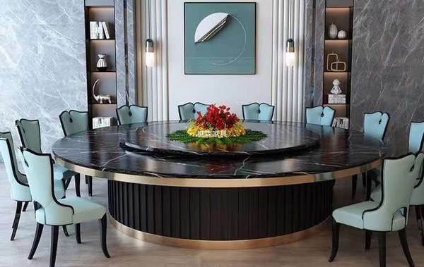 一般有手动设置匀速和变速两种。一般配有远程遥控器,。多用于酒店包间,采用实木,密度板,多层等板材制造而成。转盘多为钢化玻璃或者实木面制造。电动餐桌是近几年酒店餐桌椅的一个创新产品,可以给人们就餐带来更多的方便。