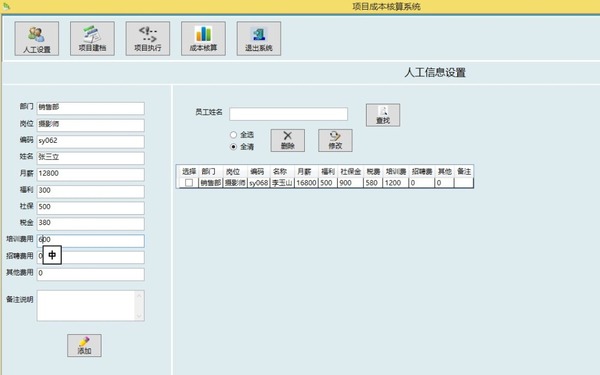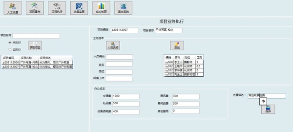 1、首先录入人工与项目的基本信息,然后进行项目执行操作。