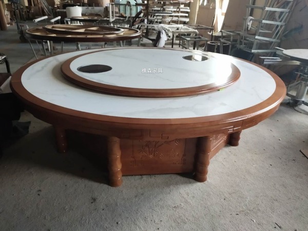 佛山市樵森电动餐桌厂设计生产的电动餐桌风格种类齐全,有新中式电动餐桌、中式电动餐桌、欧式电动餐桌、美式电动餐桌、大理石火锅电动餐桌等,餐桌采用白橡木制作,表面硬度达到3H,内置机芯根据餐桌的材质及承重要求配支架式机芯、轨道式机芯、以及盘式机芯,机芯驱动采用上海产交流静音电机,确保电动餐桌运转时安静平稳。