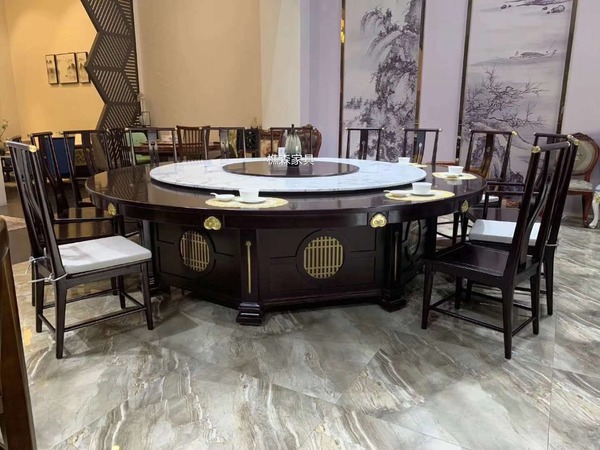 酒店电动餐桌椅 电动转盘餐桌 新中式电动餐桌 酒店实木电动餐桌