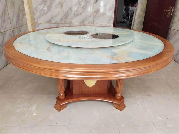 电动餐桌桌面直径;3.8m 可坐人员数;?20人 建议场地大小;?6.2m以上电动转盘直径; 3 可以加座人数;4人
