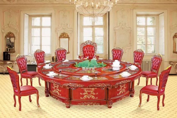 电动餐桌就是在大圆桌面上安装以电动转盘,使用时转盘可以根据设置自动低速旋转,方便用餐人员,夹取食物菜肴。一般有手动设置匀速和变速两种。一般配有远程遥控器。多用于酒店包间,采用实木,密度板,多层等板材制造而成。转盘多为钢化玻璃或者实木面制造。电动餐桌是近几年酒店餐桌椅的一个创新产品,可以给人们就餐带来更多的方便。