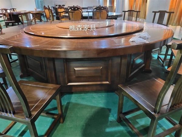 佛山市樵森家具有限公司是生产电动餐桌,电动餐台,电动圆桌,自动餐桌,自动餐台,火锅桌,无烟烧烤火锅桌,厂家批发,低价直供,公司对客户的宗旨是:无理由退换货,。电动餐桌由实木和钢铁组合制造而成。电动机和大小齿轮带动桌面转盘转动。