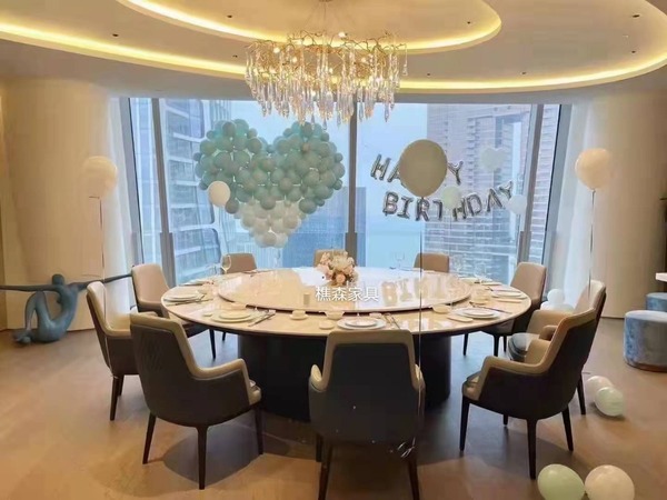 8、电动餐桌可配备音乐、喷泉、盆景、假山、问候语等装饰品,将各种自然景观和餐桌巧妙结合、彰显出典雅的风格。