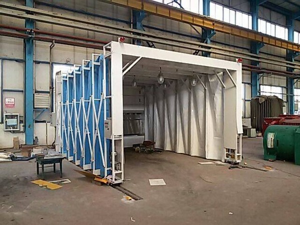 4.移动伸缩式喷漆房整体为框架传动结构,每组框架间均由阻燃PVC布密封连接,安装快捷、外形美观。
