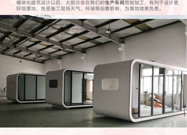 随着集装箱建筑近几年在国内的兴起,越来越多的人关注到集装箱,因其方便快捷的特性以及相关政策的倾斜,越来越多的人选择集装箱建筑作为办公室,售卖店,咖啡厅,售楼部等的载体。而“苹果舱”作为集装箱建筑的一个演变最早是由国外最先发起。为什么叫苹果仓,普遍的说法是因其两端的转交弧度同苹果手机的一个演变相似而来。同时也符合大众的审美,摒弃了集装箱方方正正,棱角分明的刚硬感,多了一种圆润的科技感。保留了集装箱建筑的模块化,制作速度快,安装周期短的特点。