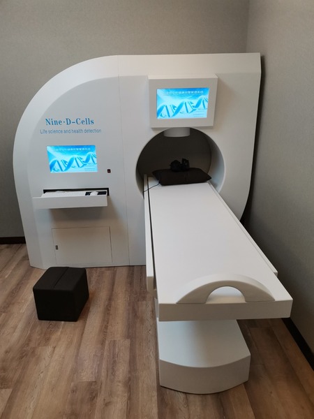 本设备可以检测全身9大系统的疾病、200多项脏腑、腺体、细胞、染色体,对10485种病症做出预测性报告,全身总计12万个采集点的检测数据保证了检测的准确性。借此,用户可亲眼看见自身当前、过去、以及未来3-5年的健康状况及细胞的活力趋势。