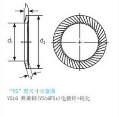 “史诺”“SCHNORR”安全垫圈分为两大类:S、VS 。8.8以下螺栓选用“S”形(含)8.8,10.9以上螺栓选用“VS”形.垫圈上的锥面螺旋齿纹发挥最大牵引力.