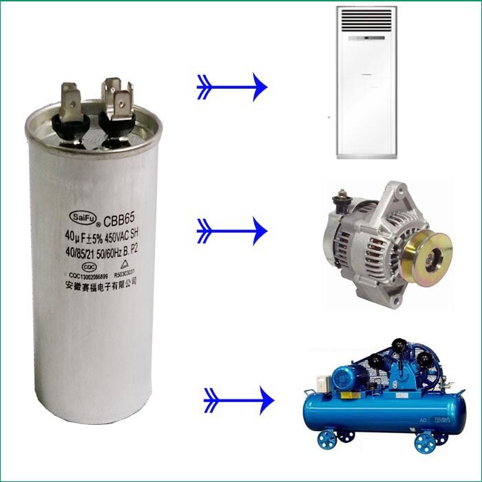 CBB65电容器学术上叫做金属化聚丙烯膜交流电机电容器,从中,我们也可以看出它的部分主要用途。