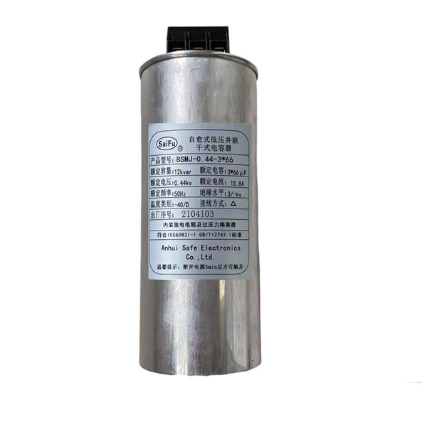 本产品规格书为安徽赛福电子有限公司提供,适用于标称电压1000V及以下,频率为15Hz~60Hz的交流电力系统的功率因素的电容器,主要用于提高功率因素,减少无功损耗,改善电压质量。
