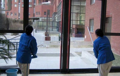 6、 保持所有公共场所玻璃窗在视线内无灰尘、蜘蛛网、印痕,每周擦一遍以上。