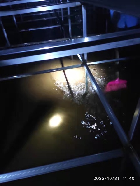 3、池内剩余少量水时,用次氯酸纳配置好一定比例溶液放入水池内进行浸泡杀菌;