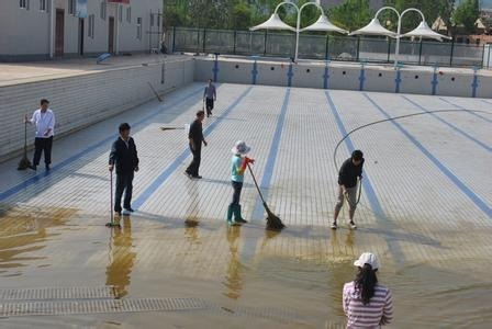 3、池内剩余少量水时,用次氯酸纳配置好一定比例溶液放入水池内进行浸泡杀菌;