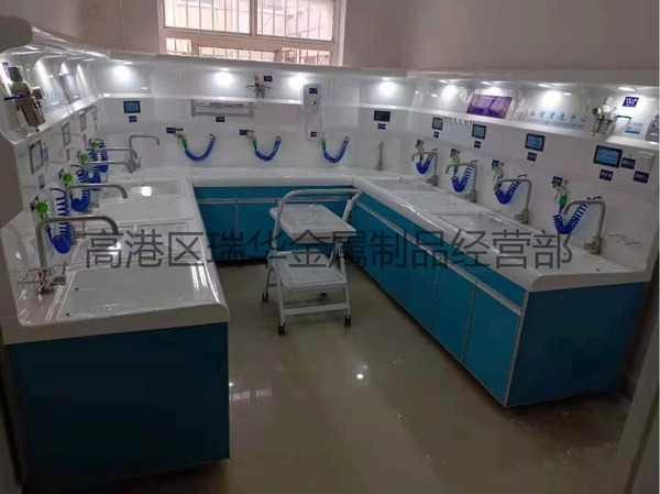 整体造型结构按功能作用形成分体组合,便于设备检修保养,柜体配置静音轴承滚轮,更易搬迁和功能升级,柜体:进口彩晶钢化玻璃材料制成,环保、防潮、耐酸碱,永不变形变色,生锈;柜体内有防腐防潮的专用PVC储物底板,SUS304优质不锈钢,下柜悬空不小于10cm,柜体及柜门由优质材料制成,环保、防潮、耐酸碱,永不变形变色,生锈;柜体内有防腐防潮的专用PVC储物底板;不形成台下卫生死角,便于清扫,符合院感要求,功能背板采用PMMA高分子复合材料一体吸塑成型,与洗消槽及干燥台的材质和颜色相同,防腐防潮。