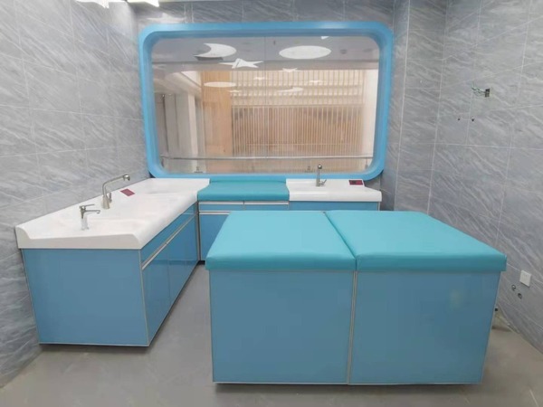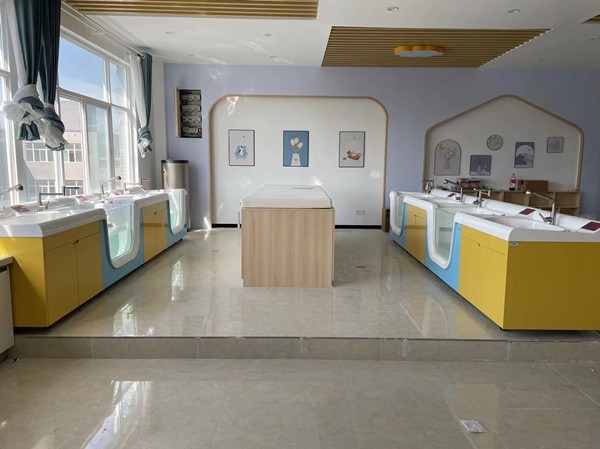 产品介绍:婴儿洗浴设备常见于妇幼保健院,医院产科,月子中心,母婴会所等,为刚出生的宝宝提供优良的洗浴环境。此产品为定制产品,需根据房间尺寸定制方案。、婴儿洗浴中心由婴儿洗礼池,婴儿游泳池,护理平台,扶触软包台,洗手池等组成。洗礼池和游泳池,洗手池,护理平台,转角平台都采用面层为优质的A级PMMA高分子复合材料一体成型,表面细菌残留量远远低于不锈钢,人造石,陶瓷盆和其他普通塑料。婴儿洗澡池底部圆滑突起设计;给婴儿一防滑支撑点,防止婴儿在池内滑动,造成意外呛水。