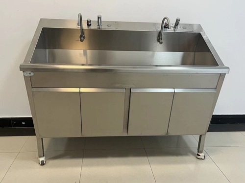 不锈钢洗手池出水方式分为:感应式、膝碰式、脚踏式