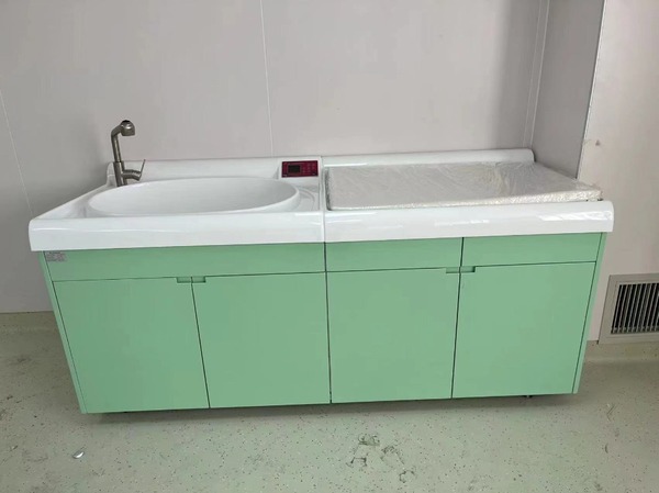 迪新婴儿洗浴中心拥有良好的台面质感,细腻亲切,无冰冷感,全弧形造型设计给婴儿体贴的呵护与关怀,洗礼池和游泳池特有的裙边设计,既方便固定一次性防交叉感染隔膜袋,又防止台面上污水流入池内。游泳池利用有效的水平面积提供更加理想的池内净深度,满足婴幼儿洗浴时的安全高度需要,同时有效保持水温特别设置水位线,防止婴儿游泳时池水外溢。