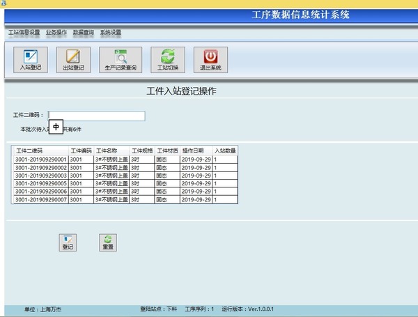 (3)如果已经工件入站登记完成,系统提示。如图示: