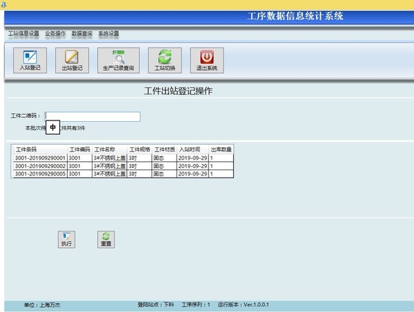 (1)扫描完成的工件出站品,扫描完毕后,点击执行按键,完成操作。如图示: