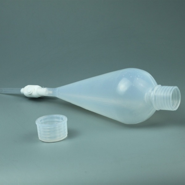 PFA也称可溶性聚四氟乙烯、特氟龙(Teflon),用于痕量分析、同位素检测,ICP-MS/OES/AAS分析等实验。PFA分液漏斗主要用于固液或液体与液体反应实验,控制所加液体的量及反应速率的大小以及物质分离提纯,对萃取后形成的互不相溶的两种液体进行分液