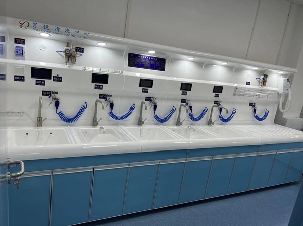 内窥镜清洗工作站是我公司根据卫生部《内镜清洗技术操作规范(2016年版)》的要求,结合国外先进技术及工艺,产品采用人性化及标准化设计、选材精良考究、配置灵活性强、自动化程度高、操作简洁方便、使用安全可靠、性价比高、清洗效果显著,广泛适合国内不同规模医疗机构开展内镜及其它器械清洗工作,是一种为内镜诊疗工作中对内镜清洗的设备。它由台面/清洗槽,柜体/功能背板,豪华内镜干燥保养台,自动灌流器,空压机,高压水枪,专用水龙头,内镜吹干机,灌流器自动接头,水源中心控制系统,中心电源控制系统,中心气体处理器,过滤水装置,专用方槽盖,内镜侧漏系统等,可选配追溯系统,超声波清洗机,纯水机,内镜转运车等。